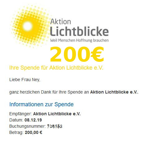 200€ für die Aktion Lichtblicke, ein ganz dickes DANKESCHÖN an jeden einzelnen von Euch!